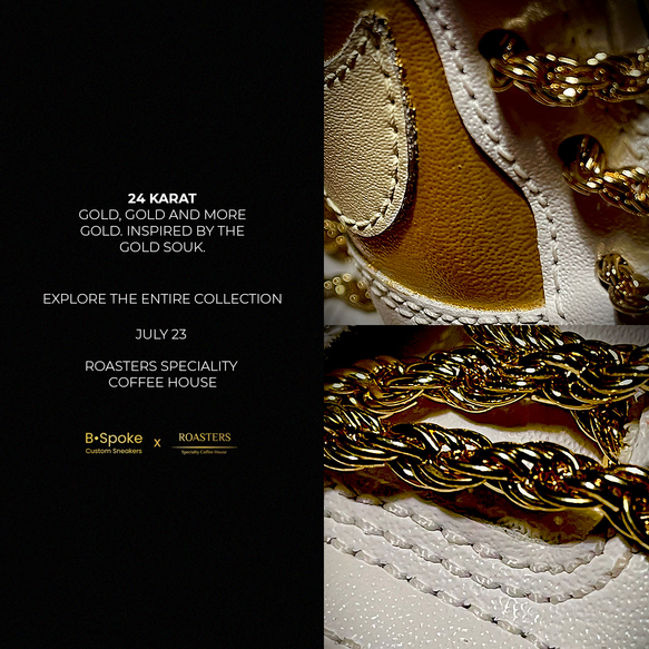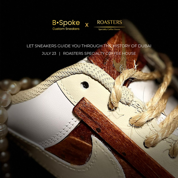 Pieces Of Our Past was an interactive and exclusive single day activation at Roasters Al Wasl, Dubai. Roasters prides itself on it's Emirati heritage and as an ode to this heritage, we collaborated with sneaker designer Richard Cooke to create 4 unique pairs of customised sneakers, each one representing a historic landmark in the UAE that hasn't changed with time. These sneakers were displayed as a gallery, with VIP attendees from the sneaker, design and fashion community attending the pop-up, viewing the sneakers, bidding on them and taking part in a panel discussion about the growth of sneaker culture in the UAE.